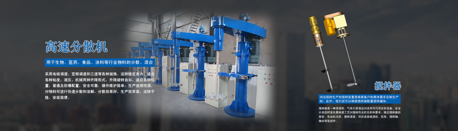 無(wú)錫鴻遠(yuǎn)攪拌設(shè)備有限公司是一家專(zhuān)業(yè)生產(chǎn)設(shè)計(jì)攪拌設(shè)備的綜合型公司。 公司主要產(chǎn)品有:不銹鋼夾套攪拌罐、高速攪拌罐、高速真空攪拌罐、衛(wèi)生級(jí)不銹鋼攪拌罐、塑料攪拌罐、混合機(jī)系列、球磨機(jī)系列、攪拌機(jī)系列、攪拌器系列、砂磨機(jī)系列和包裝機(jī)系列等。 公司具有優(yōu)良的機(jī)械制造工藝裝備,成熟的生產(chǎn)管理體系,生產(chǎn)的產(chǎn)品應(yīng)用于石油化工、污水處理、生物醫(yī)藥、濕法冶金、化纖、造紙、食品加工等領(lǐng)域,產(chǎn)品質(zhì)量可靠,深受用戶(hù)好評(píng)。 鴻遠(yuǎn)公司理念:以客戶(hù)至上為中心,以生產(chǎn)優(yōu)良產(chǎn)品為基礎(chǔ),以專(zhuān)業(yè)的技術(shù)力量為支持,以周到的售前售后服務(wù)為依托,以堅(jiān)實(shí)的加工實(shí)力為后盾。本著“思用戶(hù)所想,急用戶(hù)所急”的原則;保持著“以質(zhì)為本,以誠(chéng)為信”的宗旨;秉承著“科技創(chuàng)新,與時(shí)俱進(jìn)”的發(fā)展潮流,努力打造優(yōu)良的攪拌產(chǎn)品。 竭誠(chéng)歡迎新老客戶(hù)前來(lái)咨詢(xún)、洽談與合作,共創(chuàng)美好明天!